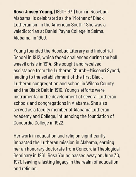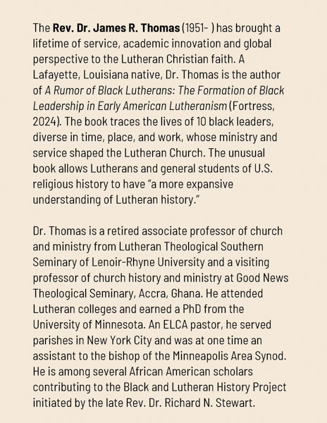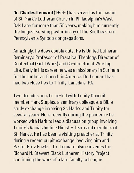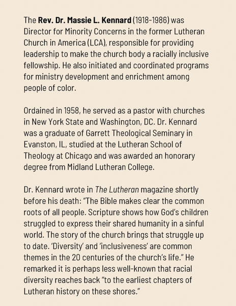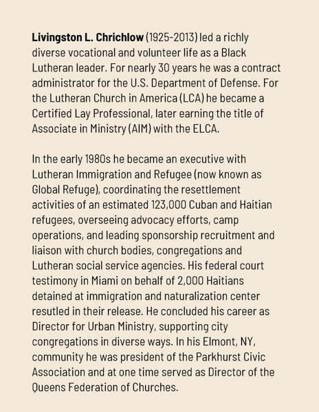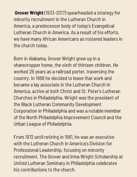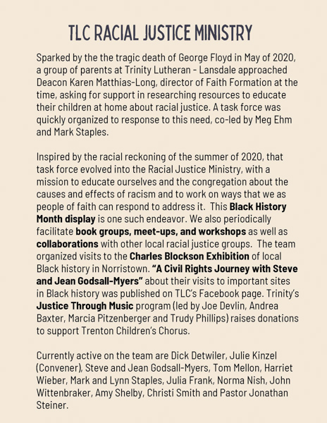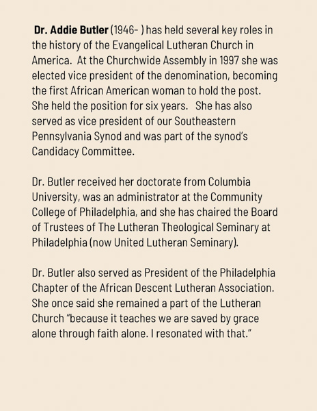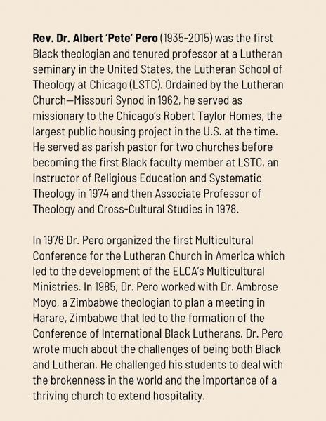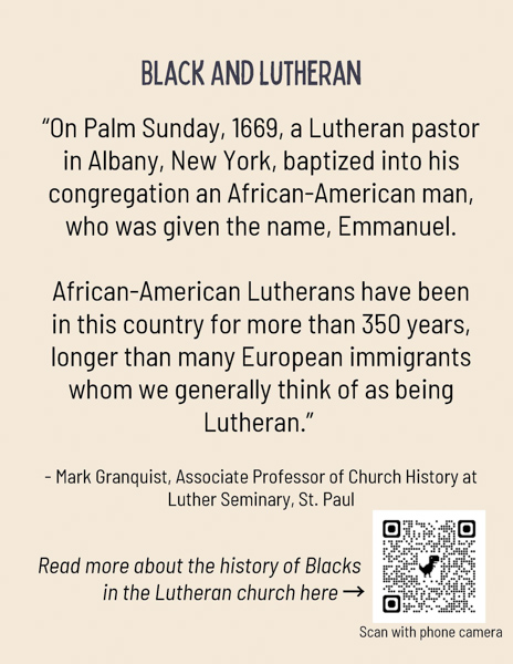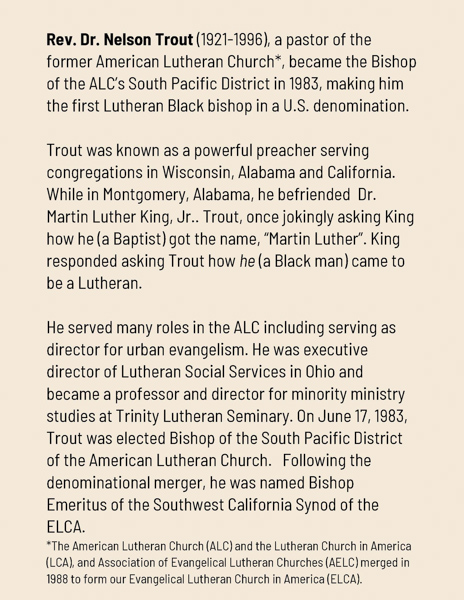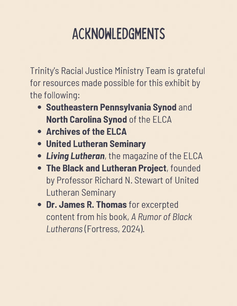 Commemorating notable Black Lutherans who shaped history in our church, community and beyond. Created by Trinity Evangelical Lutheran Church Racial Justice Ministry, Lansdale PA with the support and encouragement of Black and Lutheran scholars.