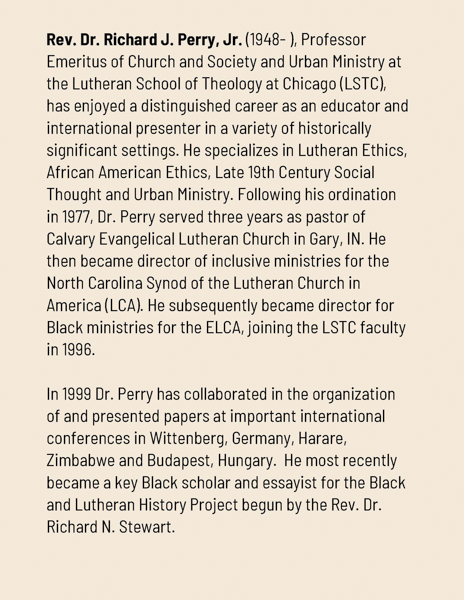 The Black and Lutheran Project has been generously funded by the Louisville Institute. “Rich” had a vision that the history would have a timeline basis and that as a resource on the worldwide web, scholars and individuals curious about the history of Black Lutheran leaders would have easy access to background they wanted to learn about. Well-documented here are both struggles and accomplishments that deserve continuing notice.